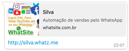 3º) Cria um link profissional da empresa WhatSite em 3 minutos e já pode disponibilizar nas redes sociais, anúncios no Facebook, Instagram, Linkedin, Youtube, OLX e muito mais.